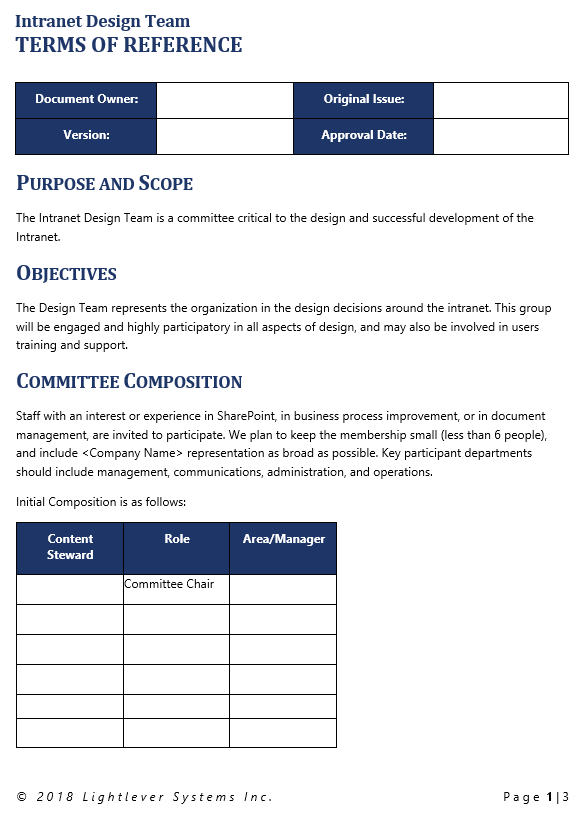 Audience: Steering Committee, Intranet Design Team
